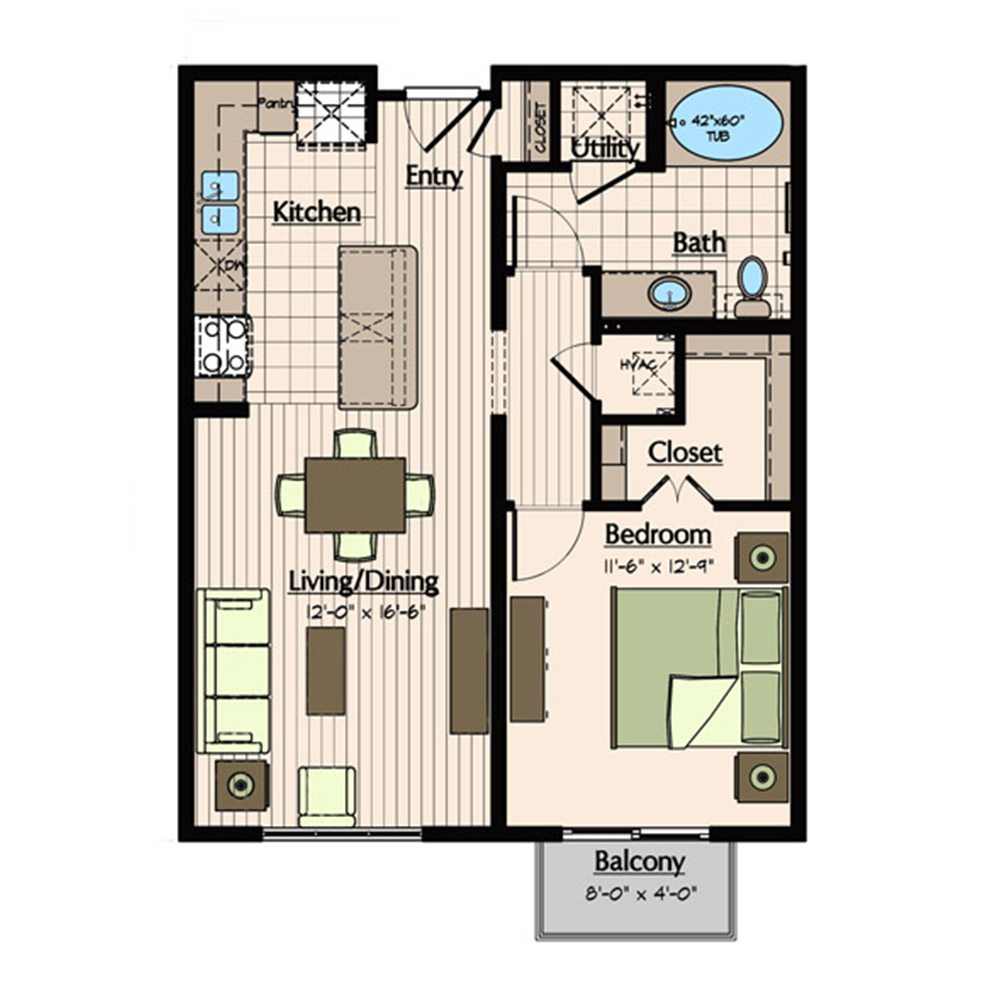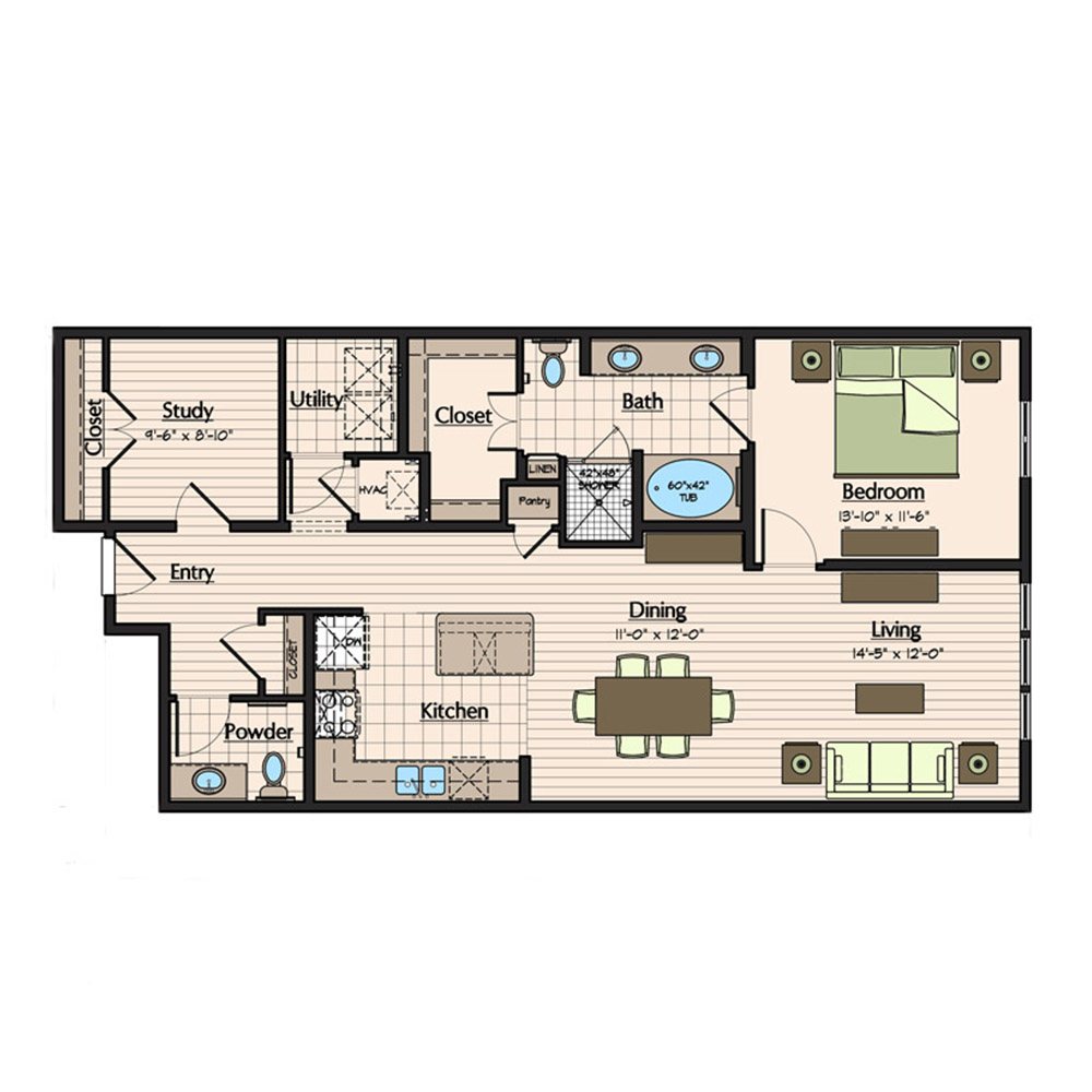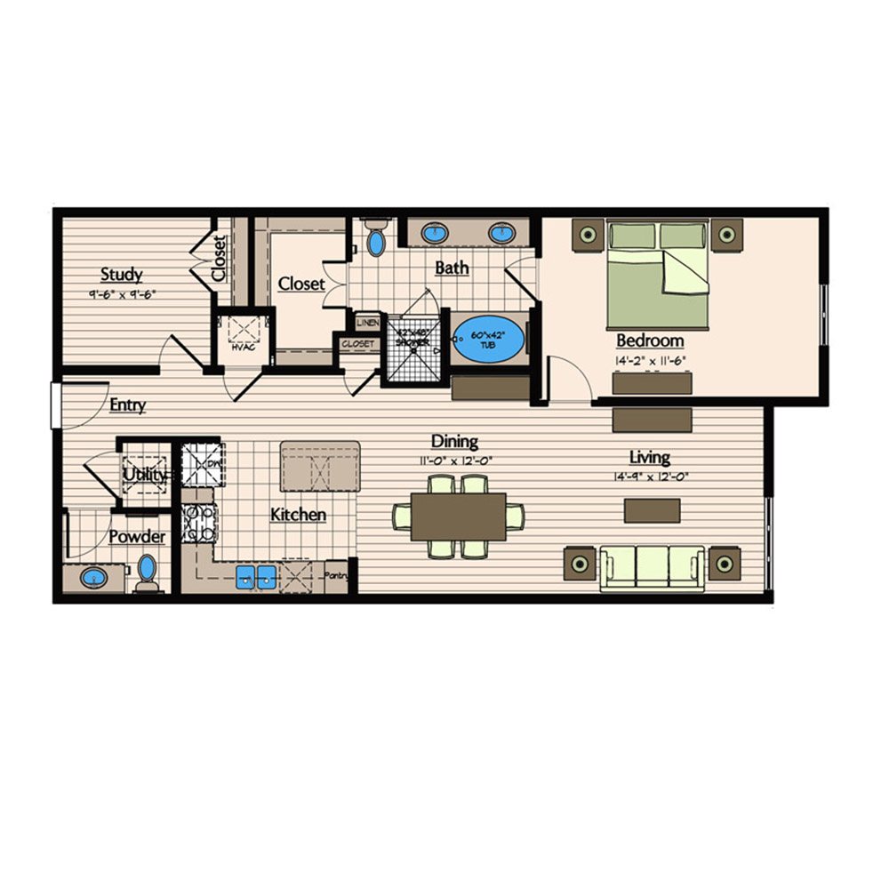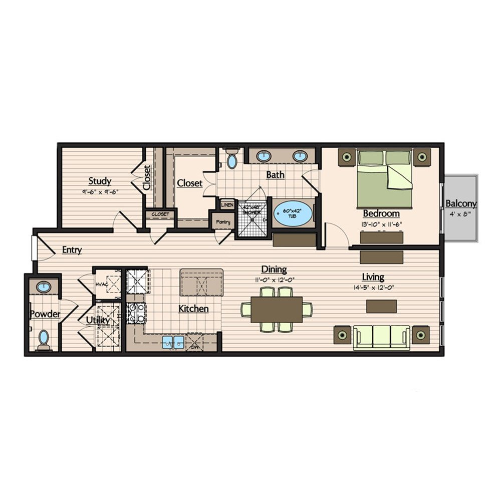 1 Bed, 1.5 Bath with Study | 1,161 S.F.